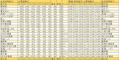 パワプロアプリ 投手特殊能力 金特 虹特 の査定一覧表